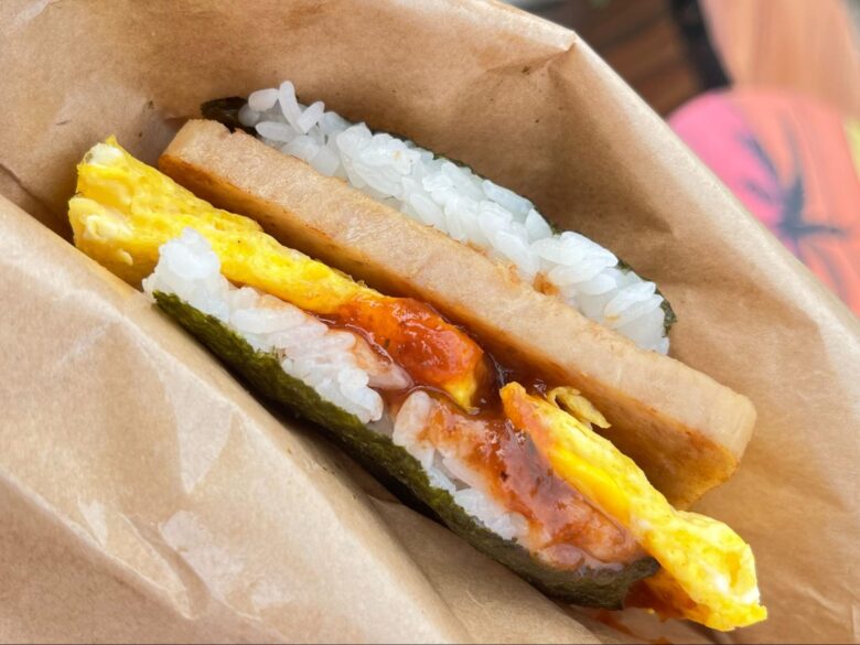 スパムと卵焼きを白いごはんでサンドした、シンプルながら奥深い一品です。 「ただのスパムむすびでしょ?」なんて思ってるあなた。北谷の『ポーたま』に立ち寄ったら、その考え、きっと変わります。