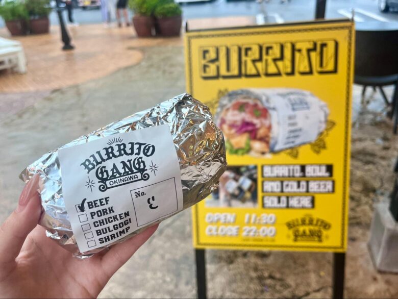 アメリカ西海岸みたいな開放感と、メキシコ屋台のようなカジュアルさがミックスされた、ちょっと気になるこのお店。アメリカンビレッジ内「ディストーションファッションビル」前の駐車場にある『BURRITO GANG』では、テラス席に座って本格ブリトーを味わえます。