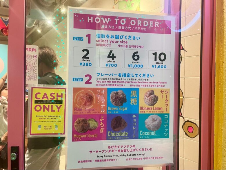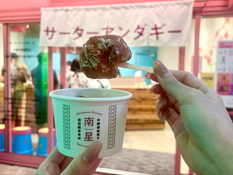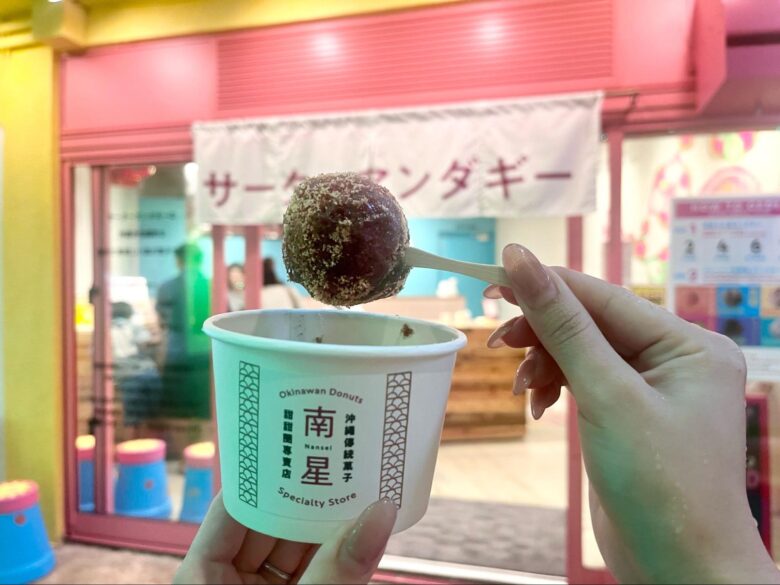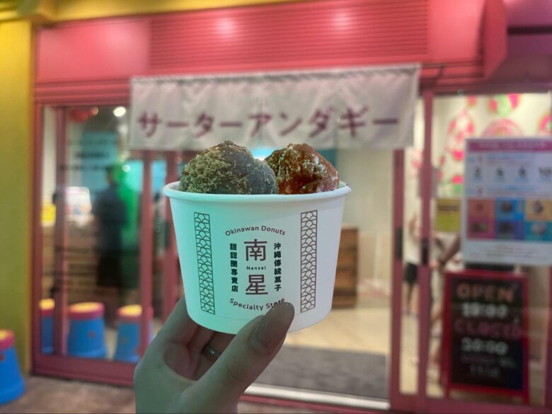 アメリカンビレッジ内にある「サーターアンダギー専門店 南星(なんせい)」では、そんなサーターアンダギーを揚げたてほくほくで味わうことができます。手のひらサイズのころんとした形と、かわいい専用容器に入った見た目も人気のポイント。おやつにぴったりな2個セットから、シェアにも嬉しい6個セットまで選べます(※支払いは現金のみ)。
