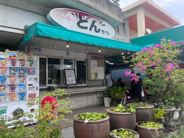 沖縄市泡瀬、美里工業高校のすぐそばの住宅街に、地元で愛され続ける「パーラーどんちゃん」があります。周辺は学生街ならではの雰囲気が漂い、半径100m圏内に弁当屋やパーラーが点在。なかでも「どんちゃん」は、運動部帰りの学生たちや近所の住民でいつもにぎわっています。