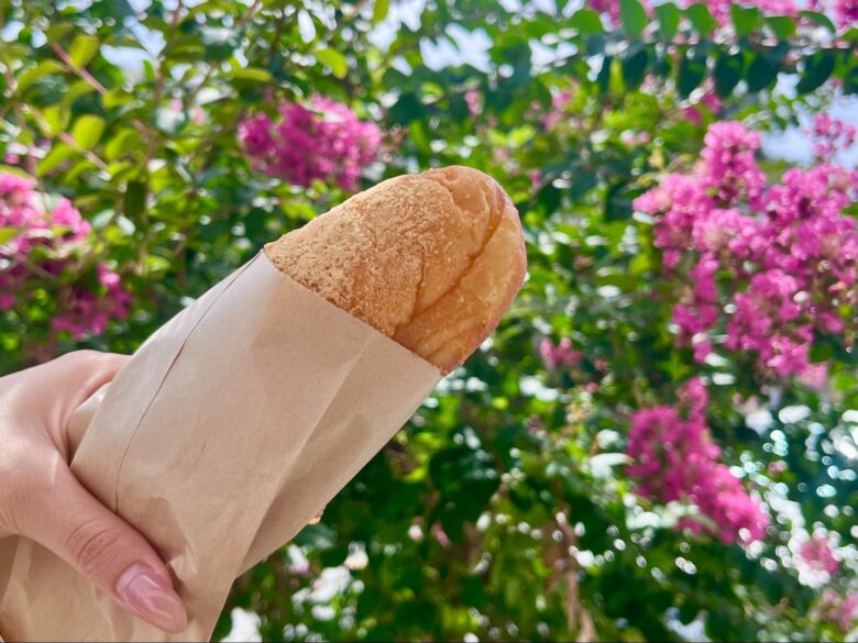 揚げたてでサクサクふわふわの食感がたまりません。味はきなこ・シュガー・ココアの3種類から選べて、どれも懐かしさとご褒美感たっぷり。おやつにもぴったりの一品です。