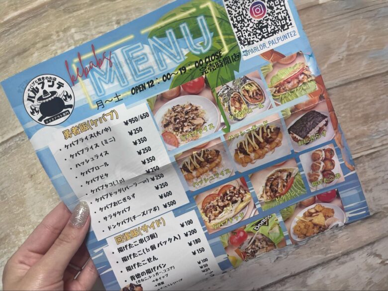 その上にジューシーなケバブがどっさり乗り、さらにピリ辛ソースが食欲を刺激します。ソースは辛さあり・なしを選べるので、辛いものが苦手な方も安心。スナック感覚で楽しめる新感覚フードです。