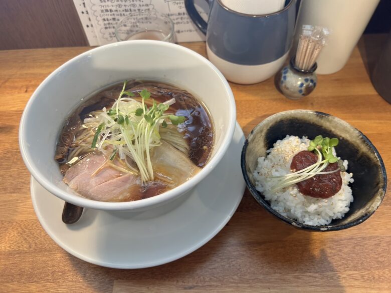【醤油ラーメン 880円(税込)、うめごはん 250円(税込)】