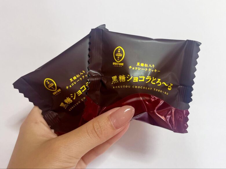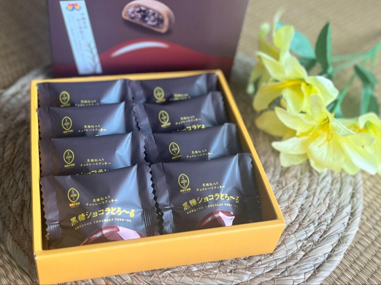 沖縄の黒糖が持つやさしい甘みと、チョコレートのまろやかなとろけ感。「黒糖ショコラとろ〜る」は、小さなご褒美のようなクッキーです。