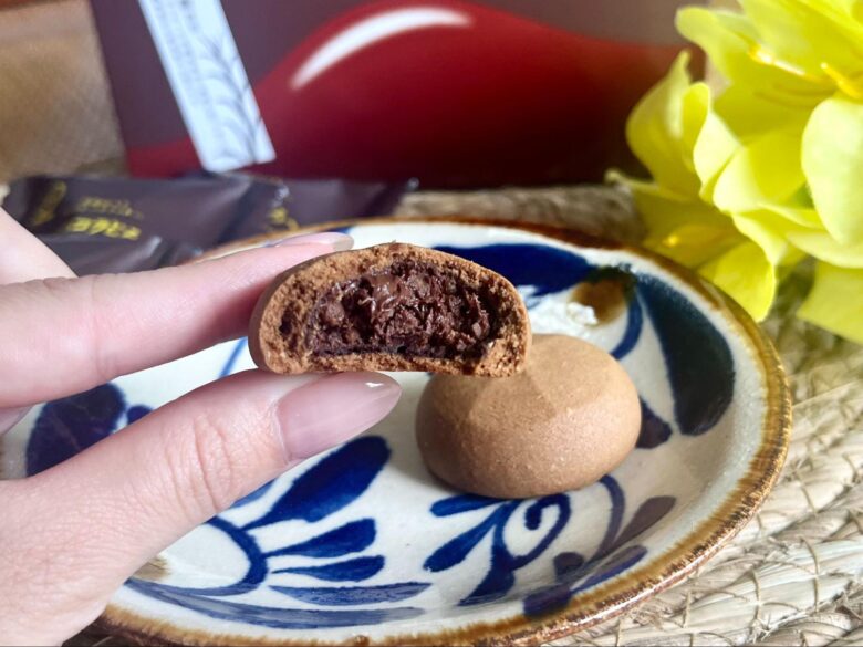 ひと口かじると、中からとろけ出すチョコと黒糖の深いコクが口いっぱいに広がります。