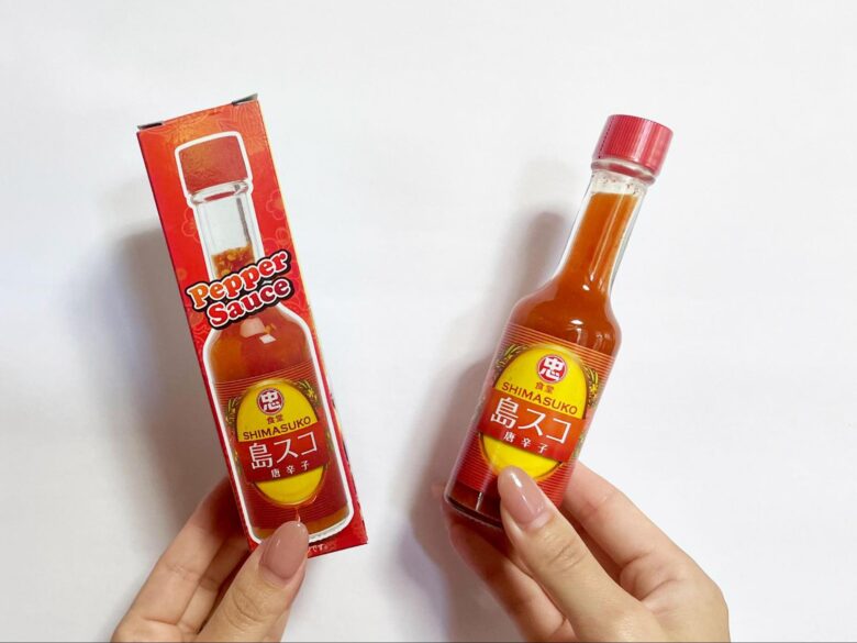 沖縄の島唐辛子をベースに、米酢や塩、さらにシークヮーサー果汁を加えて仕上げたホットソース「島スコ」。名前の由来は「タバスコ」+「島唐辛子」で、その名の通りピリッと辛く、後味はシークヮーサーの爽やかな酸味が効いた、沖縄ならではの調味料です。