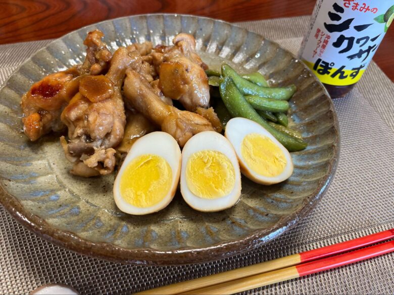 シークヮーサーぽん酢の手羽元さっぱり煮
