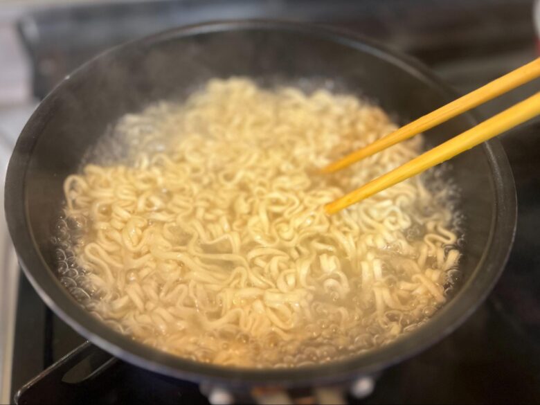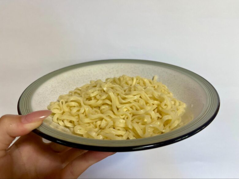 ②湯切りした麺を冷凍庫で一気に冷やす。