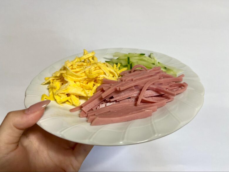 ・トッピング(例):ハム、卵、きゅうり、トマト、紅しょうが