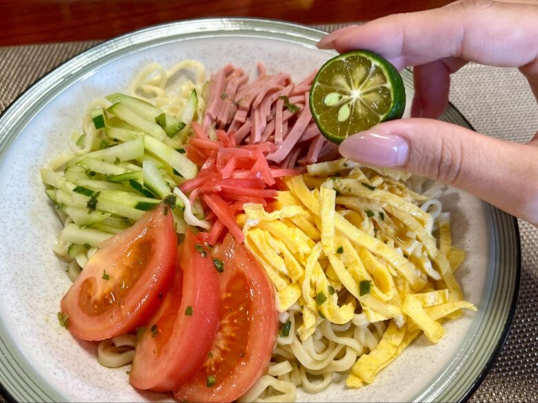 ・紅しょうがやきゅうりを加えると、沖縄らしいさっぱり感がアップします。