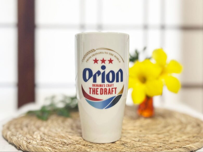 オリオンビールのロゴが入ったすらっとしたタンブラー型で、350ml缶がぴったり収まるサイズ感。 手に持つと、陶器ならではのずっしりとした重みと高級感が伝わってきます。