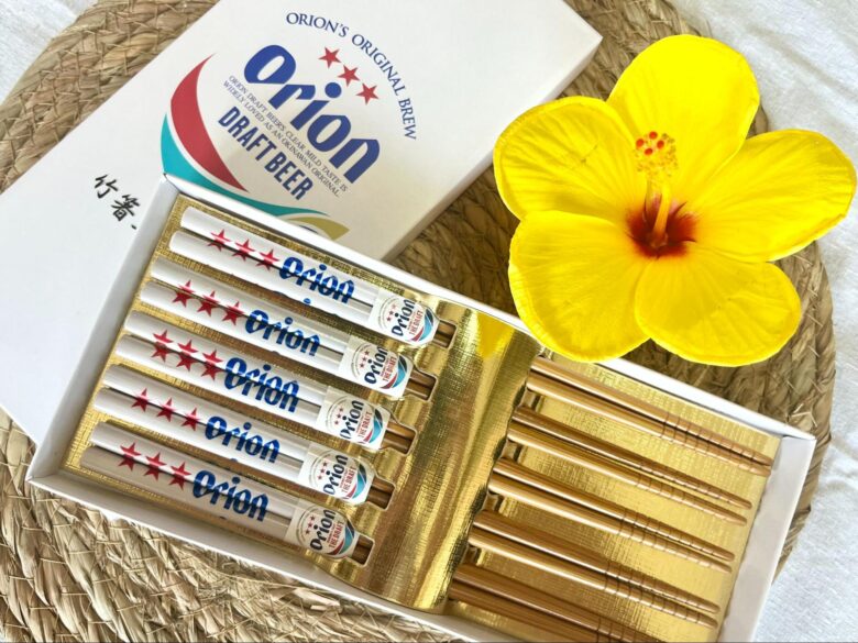 持ち手部分に、オリオンビールのロゴが入った可愛いデザインがポイントのオリオンお箸セット。毎日の食卓にちょっぴり沖縄の風を運んでくれる、人気のアイテムです♩