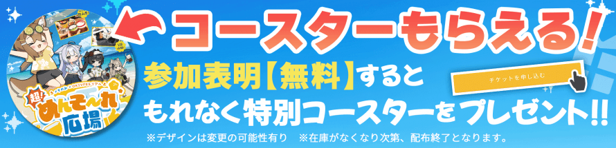 「チケットを申し込む」から参加表明【無料】をすると特別コースターがもらえるキャンペーン!